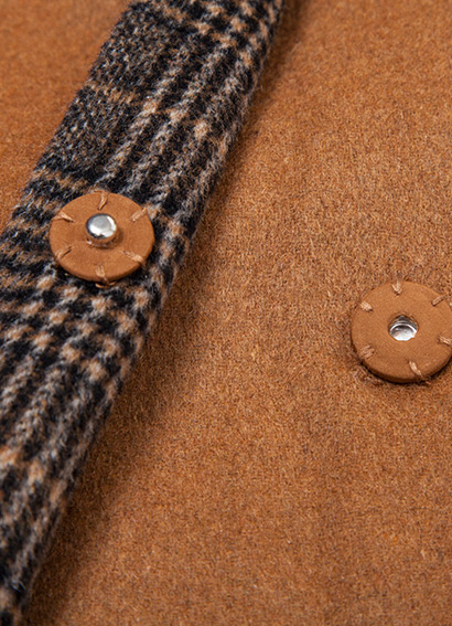 Double-sided heterochromatic wool fabric, hand-stitch no machine top stitching<br>Collar flap in dark contrast color, c