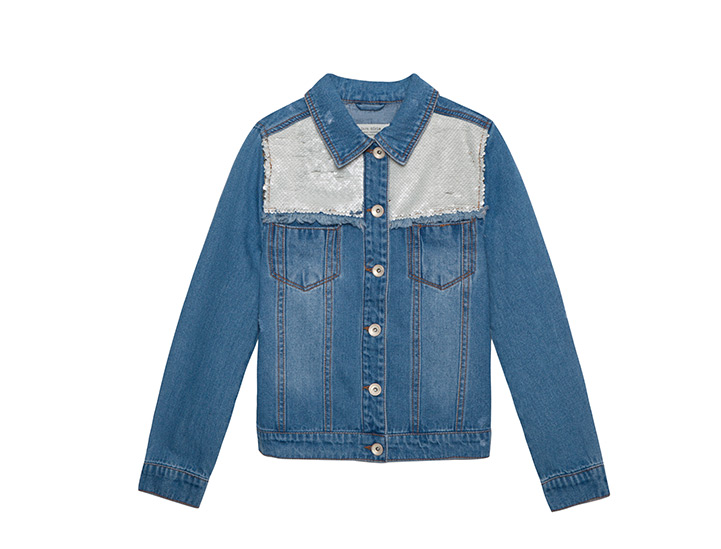 Color fading effort in garment enzyme washing front and back beads are sewn by hands.<br>Raw edge in shell fabric at fr